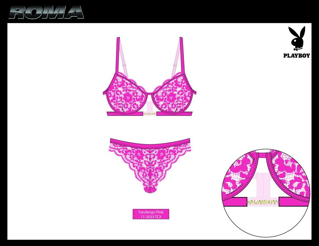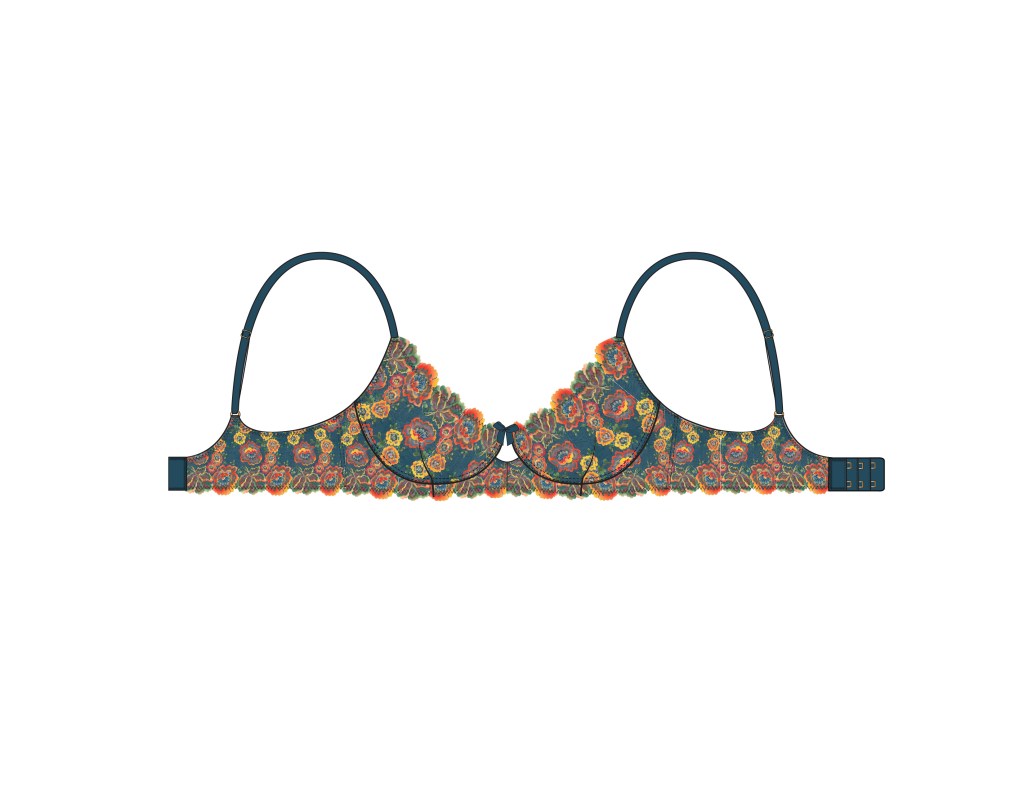 For Paris Blue there was a focus on soft and wire free bras with touches of push-up in a soft palette that appealed to the junior/college age customer. I developed cute prints, branded elastics, and a custom Eiffel Tower charm.