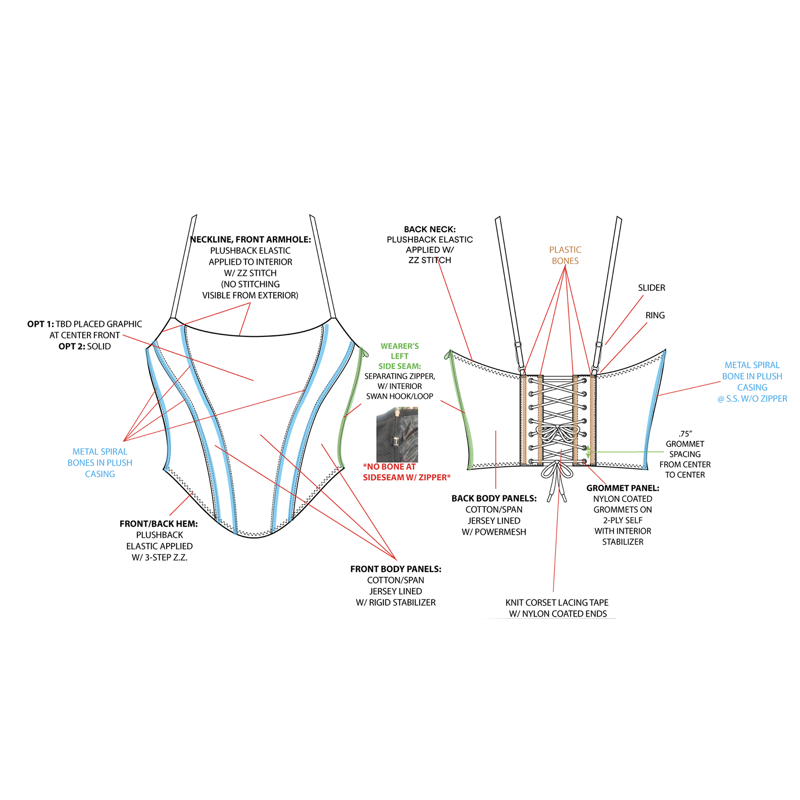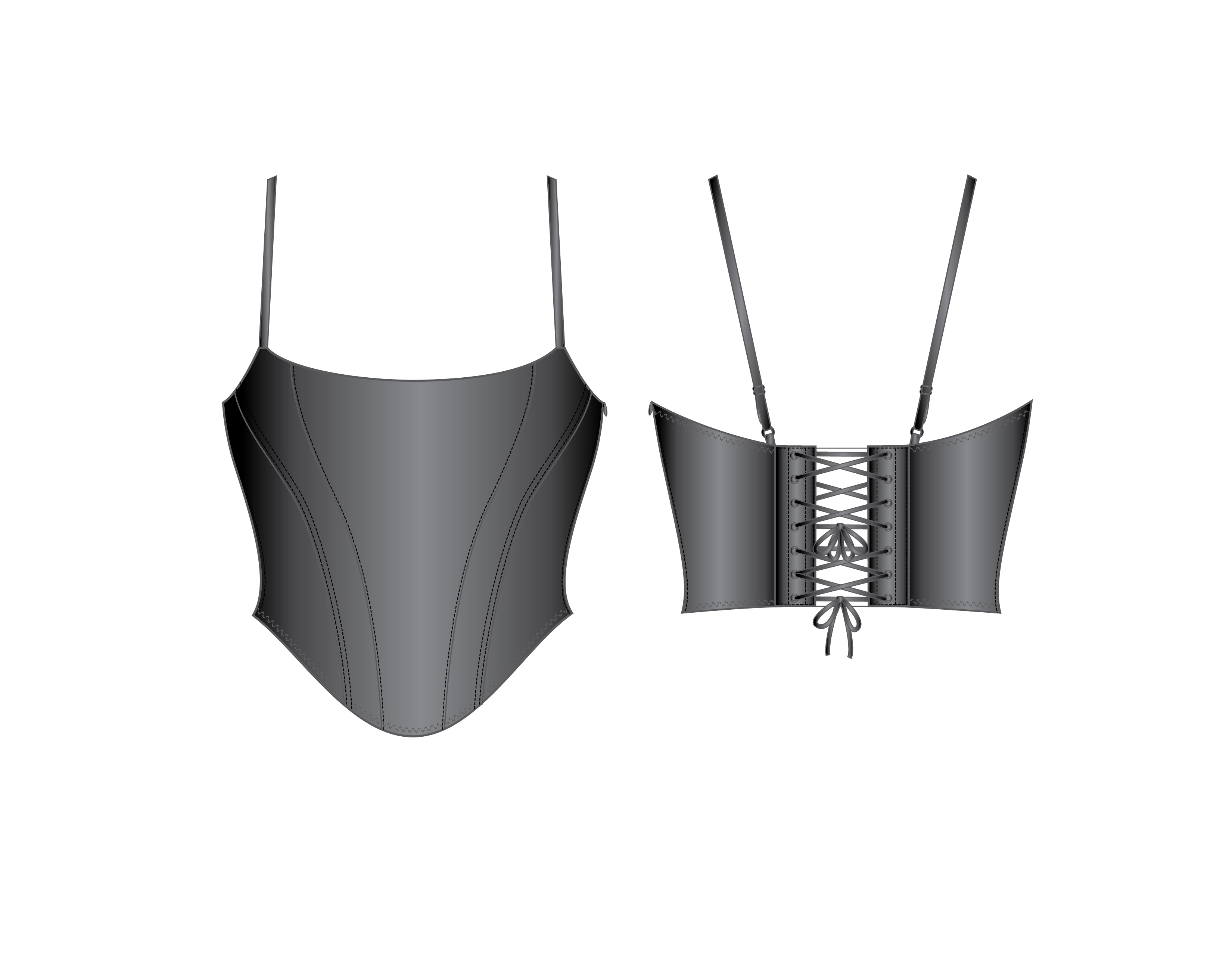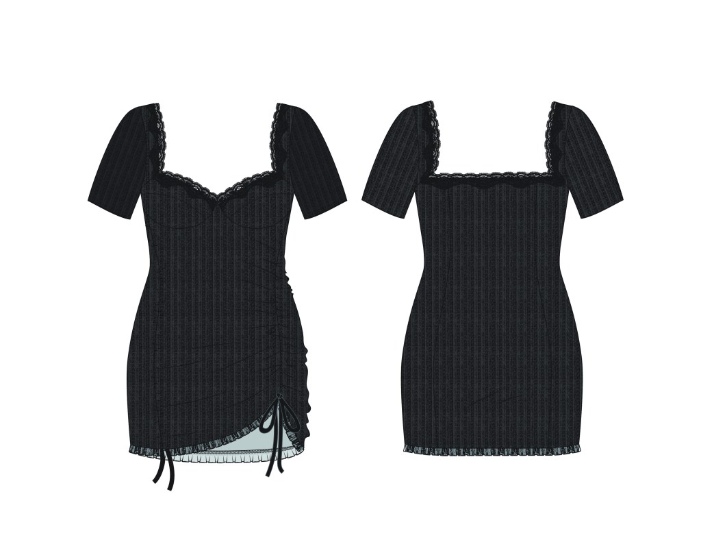 At my current position at Savage X Fenty I am on the Women’s Intimates team working as a CAD Designer. I am given hand sketches from other members of the design team, from which I develop CADs. I LOVE working on lingerie of all sorts. From slip dresses to garter belts, hosiery and boned corsets, I get to touch a little bit of everything at Savage X Fenty! Some of my favorite pieces are the more constructed items like our spiral metal boned corsets. I really enjoy getting lost in the nitty gritty details of these CADs.